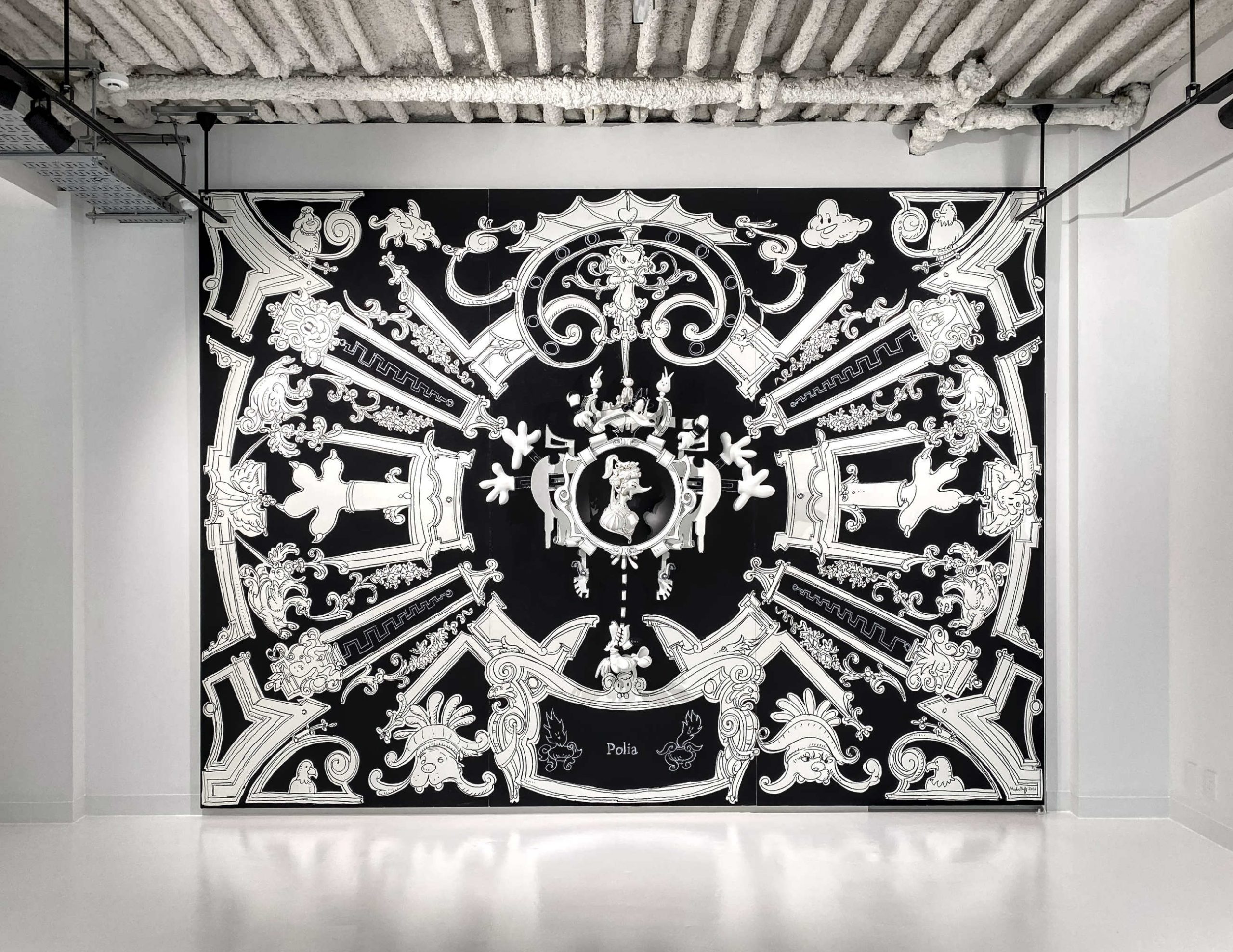 35 x 420 x 300 cm, Nylon imprimé en 3D, peinture, marqueur industriel, FRP, bois